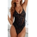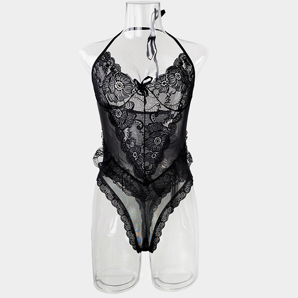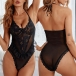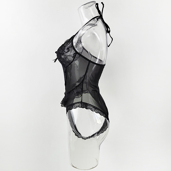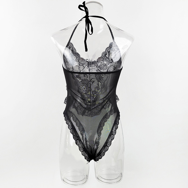 Sexy Semi-through Lace Spliced Gauze Halter Lingerie Bodysuit