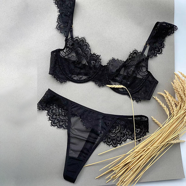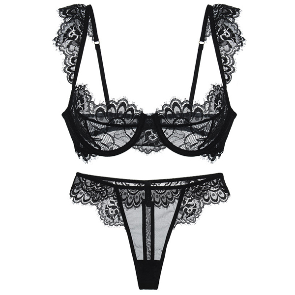Sexy Semi-through Lace Spliced Gauze Two-piece Lingerie Set