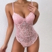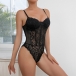 Sexy Semi-through Lace Spliced Lingerie Bodysuit