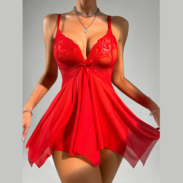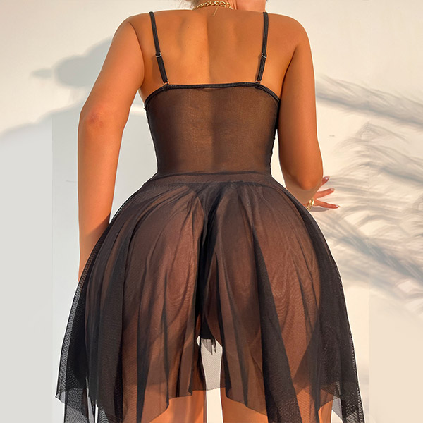 Sexy Semi-through Lace Spliced Slit Nightwear Dress