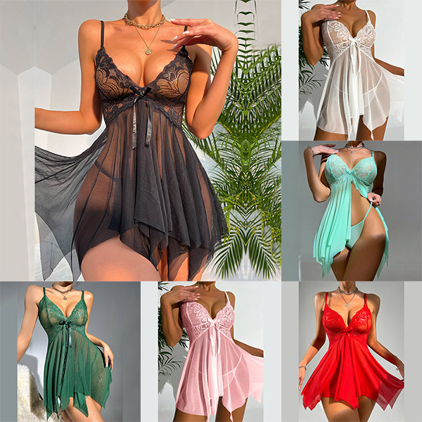 L : Bust : 96cm(37.8"); Waist : 76cm(29.92"); Dress Length : 69cm(27.17"); Panty Length : 19.5cm(7.68");
