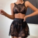 Sexy Semi-through Lace Three-piece Lingerie Set Consist of Brassie, Skirt and Panties