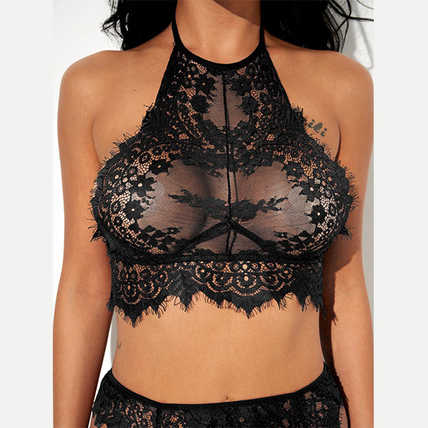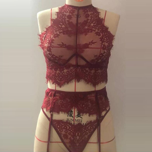 Sexy Semi-through Lace Three-piece Lingerie Set