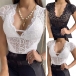 Sexy Semi-through Lace V-neck Cap Sleeve Shirt