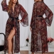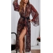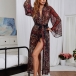 Sexy Semi-through Leopard Printed Long Sleeve Self-tie Comfy Nightgown