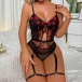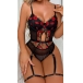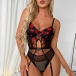 Sexy Semi-through Lip Embroidery Backless Lingerie Bodysuit