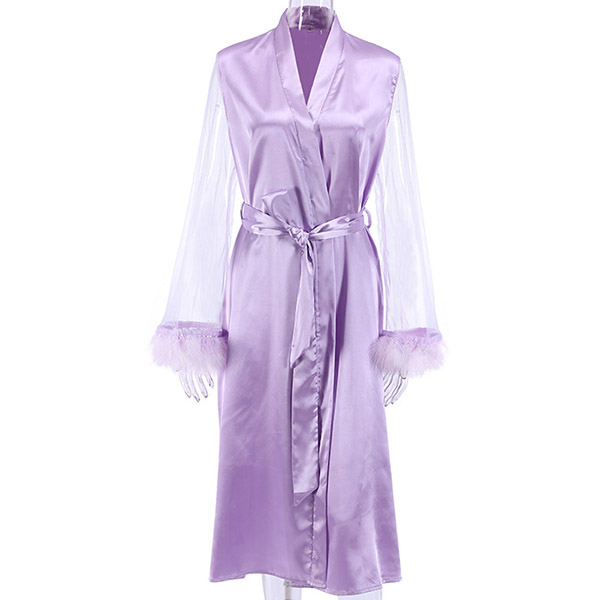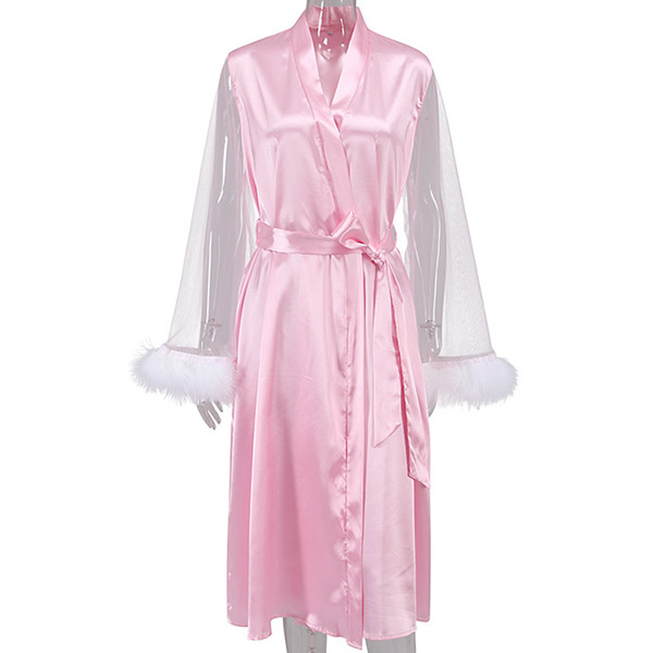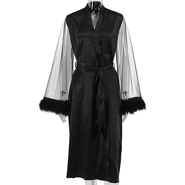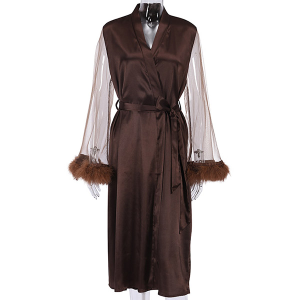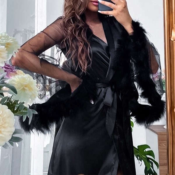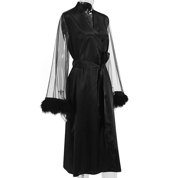 Sexy Semi-through Long Sleeve Spliced Feather Robe