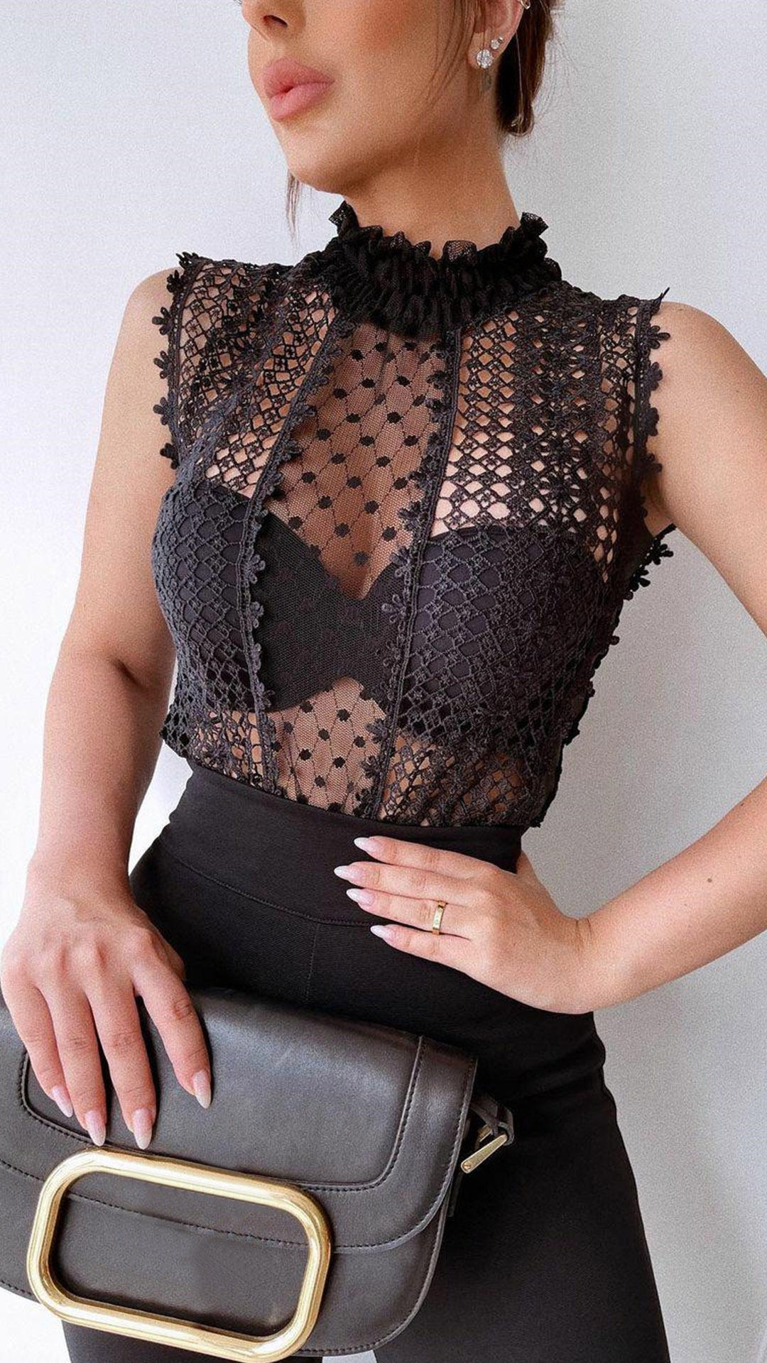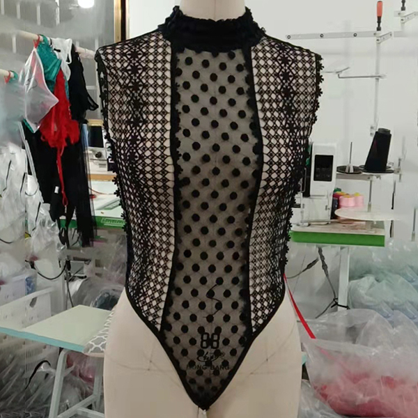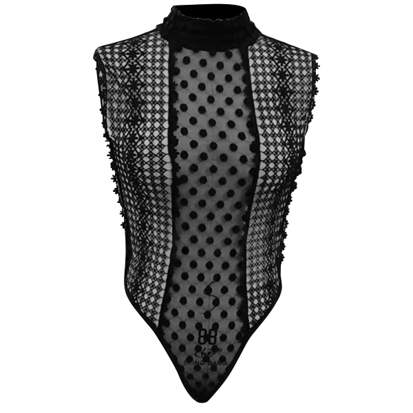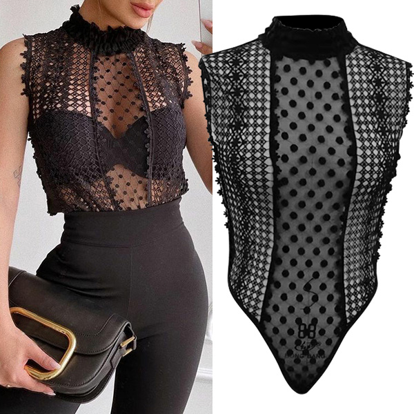 Wow, a sexy bodysuit! The semi-through mesh design adds a unique and eye-catching element, showcasing a hint of skin in a tasteful and provocative way. Pair it with high-waisted jeans or a skirt for a chic and sexy evening look, or wear it under a blazer or leather jacket for a more edgy and fashion-forward ensemble.