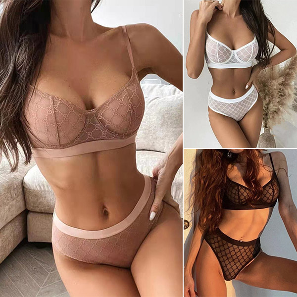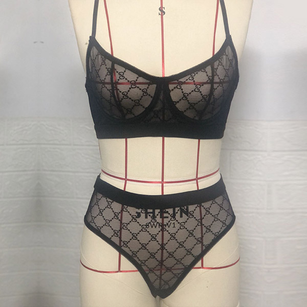 Sexy Semi-through Mesh Push-up Two-piece Lingerie Set