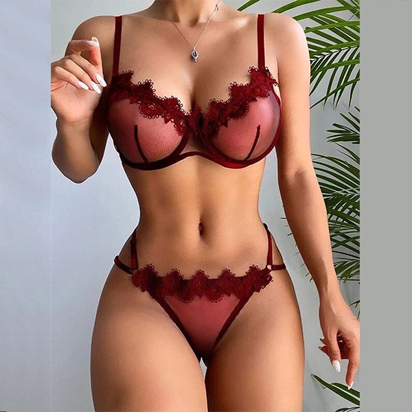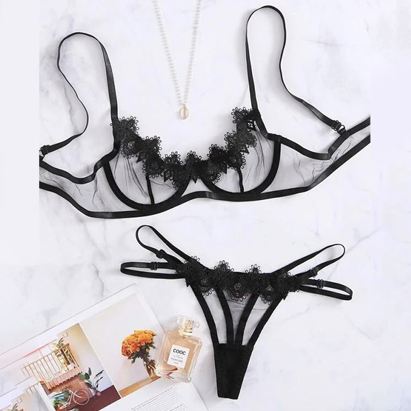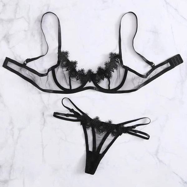 Sexy Semi-through Mesh Spliced Lace Two-piece Lingerie Set
