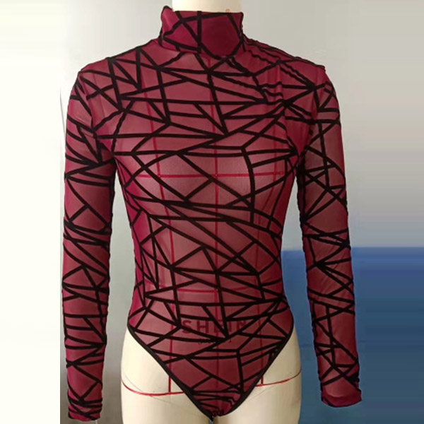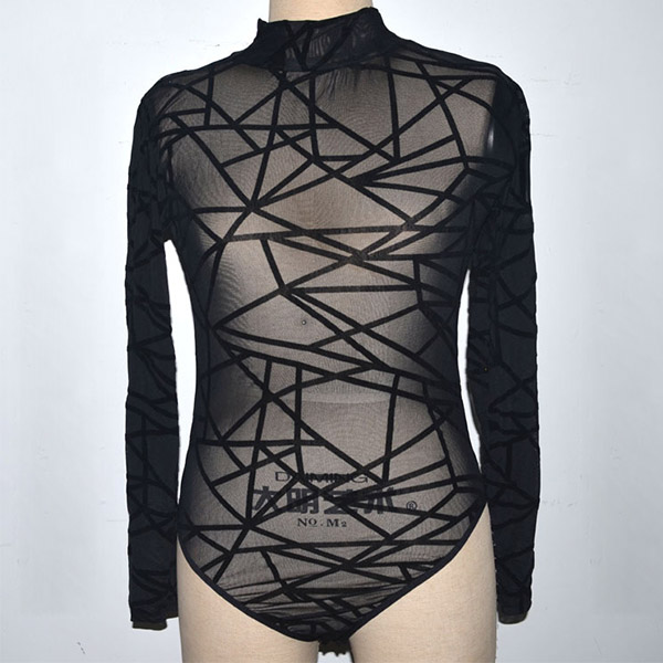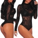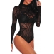 Sexy Semi-through Mock Neck Long Sleeve Lingerie Bodysuit