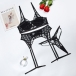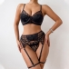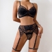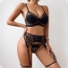 Sexy Semi-through Rhombus Mesh Patchwork Three-piece Lingerie Set