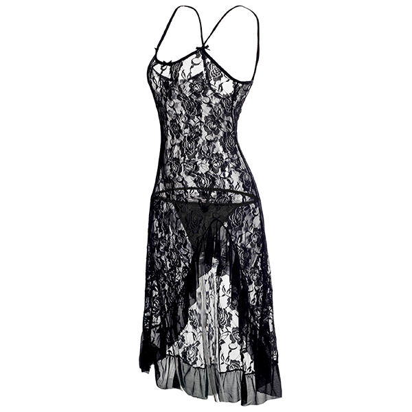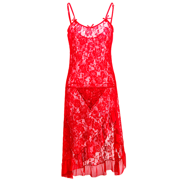 Sexy Semi-through Slit Lace Nightwear Dress