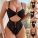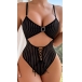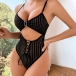 Sexy Semi-through Stripe Lace-up Two-piece Lingerie Set