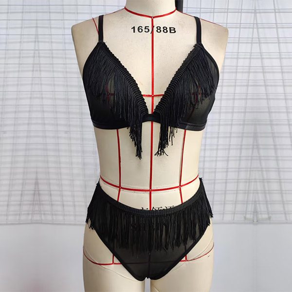 Sexy Semi-through Tassel Two-piece Lingerie Set