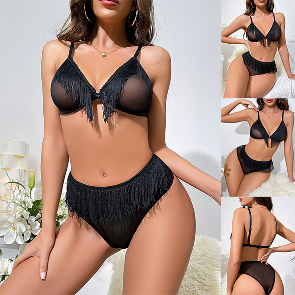 Sexy Semi-through Tassel Two-piece Lingerie Set