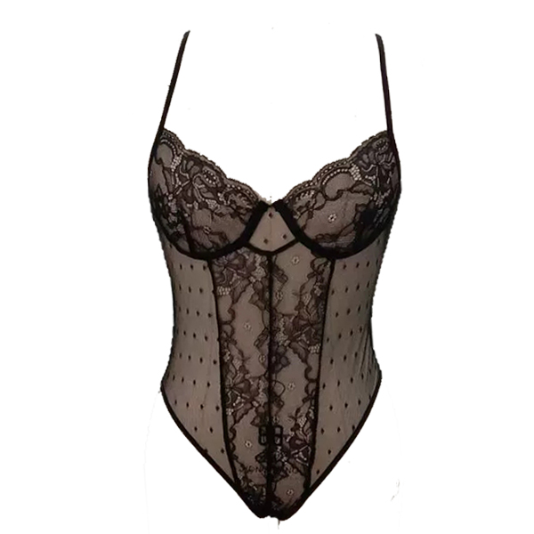 Sexy Semi-through V-neck Backless Lace Lingerie Bodysuit