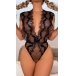Sexy Semi-through V-neck Criss-cross Lace Lingerie Bodysuit