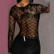 Sexy Semi-through V-neck Long Sleeve Lace Bodysuit