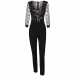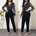 Sexy Sequin Gauze Spliced Long Sleeve High Waist Jumpsuit