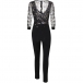 No matter when and where you are,you can easily be the focus when you dress yourself up with this jumpsuit. The sequin details and gauze spliced design make this piece look so sexy and alluring,while the high waist and clean,fit silhouette design will showcase your slender figure. Just slip into this piece to express your beauty and charm.