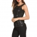 Sexy Sequin Gauze Spliced Sleeveless Round Neck Top