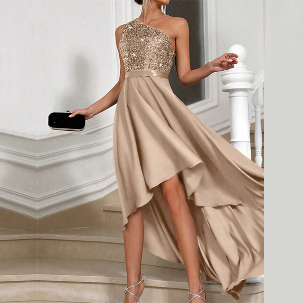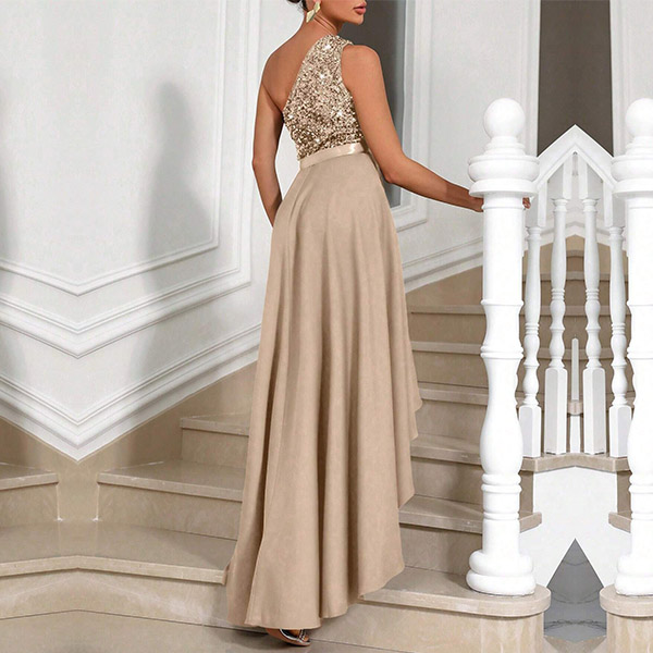Sexy Sequin One-shoulder High-rise Irregular Hemline Party Dress