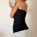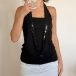 Look at this sexy shirt~The sequin spliced detailing adds a touch of sparkle and glamour, while the halter neck design accentuates your shoulders and adds a chic and sophisticated touch. The sleeveless and backless style shows off just the right amount of skin, making it perfect for a night out or a special occasion. Pair it with high-waisted pants or a skirt for a stylish and sexy ensemble.