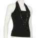 Sexy Sequin Spliced Halter Neck Sleeveless Backless Shirt
