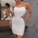 This is the perfect party dress! It is made with all over sequins that will make you sparkle and shine all night long. The backless design is sexy and will show off your best assets. The slip style is comfortable and easy to wear. You'll love how you look and feel in this dress!