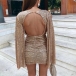 Sexy Sequined Draped V-neck Slit Long Sleeve Backless Bodycon Party Dress