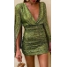 This bling-bling bodycon dress is designed to make a glamorous and unforgettable statement at any special occasion or party. Featuring a draped V-neckline, slit design along the long sleeve, backless design, it is a head-turning and glamorous outfit.