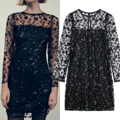 This sexy party dress is perfect for your next party! It features sequined design and the shoulder is adorned with feather details, the long sleeve, round neck and bodycon silhouette is figure-flattering. White and black, which one do you like?