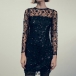 Sexy Sequined Feather Spliced Long Sleeve Round Neck Bodycon Party Dress