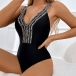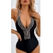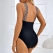 V-neck swimsuit with a leopard printed details and extra-snug fit for a sculpting effect on waist. Unadjustable shoulder straps, padded cups for shaping and good support, and backless design with metal fastener at back, your beach beauty secret!