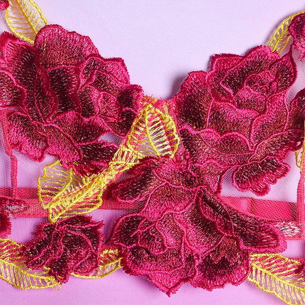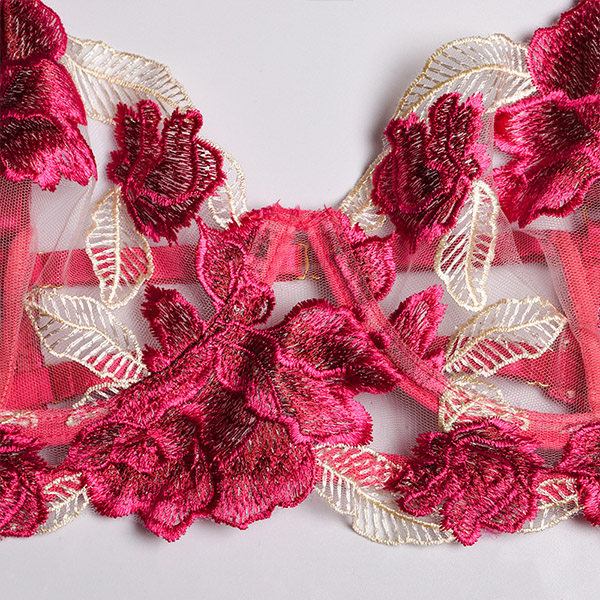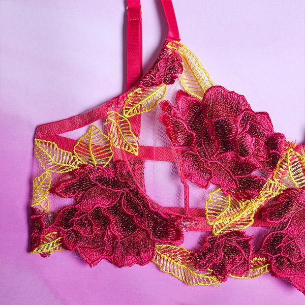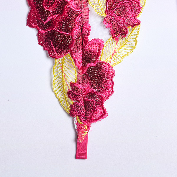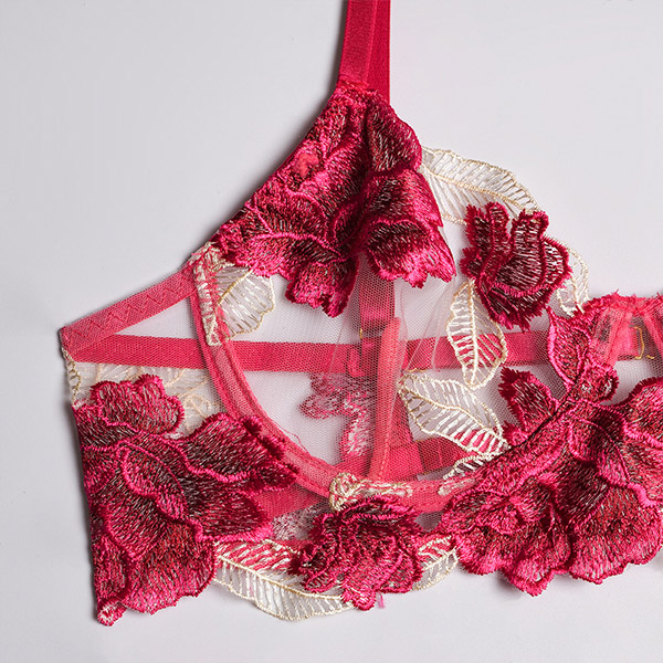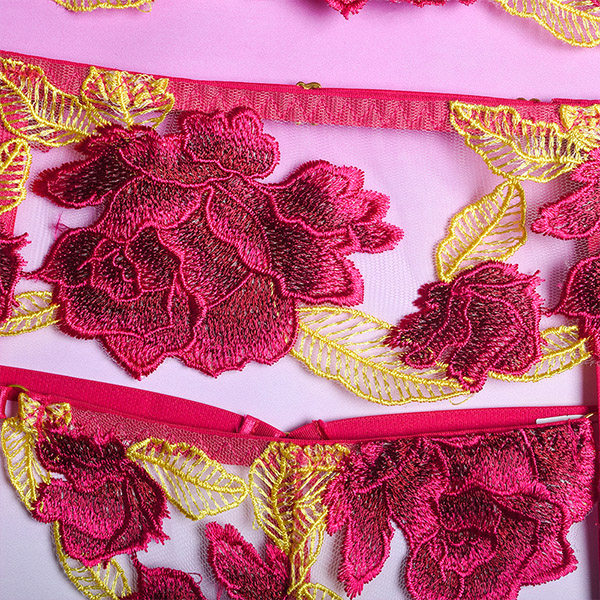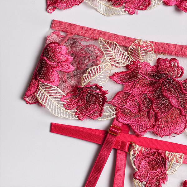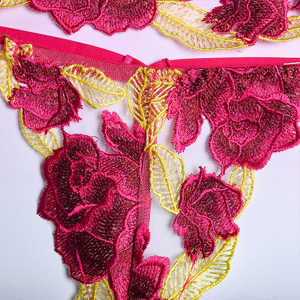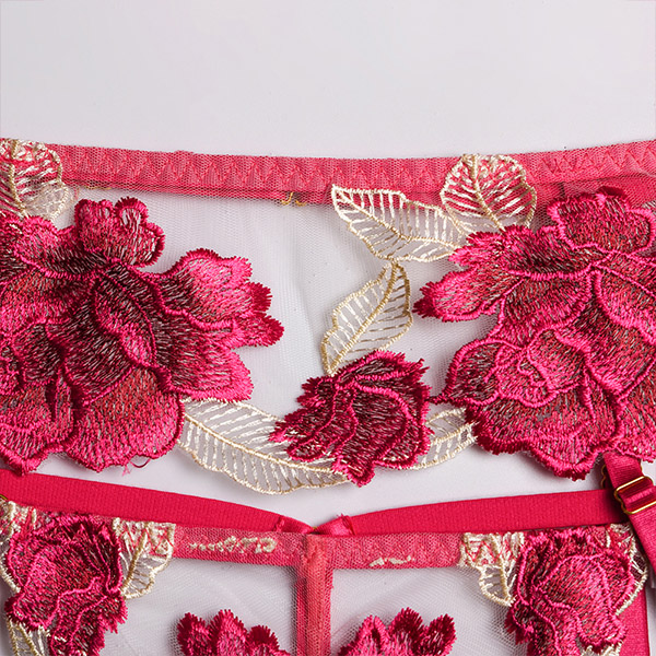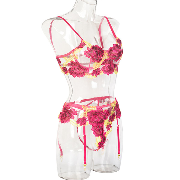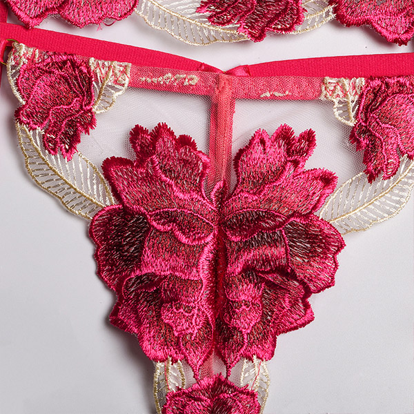 Sexy Sheer Gauze Rose Embroidery Lingerie Three-piece Set