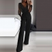 If you wanna draw more attention,then you can just slip into this jumpsuit. The sheer gauze spliced and deep v-neck design make this piece look so sexy and alluring,while the high waist and flattering black tone can better showcase your slender figure. It is your perfect choice for your fancy events.