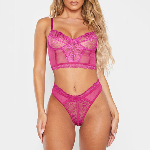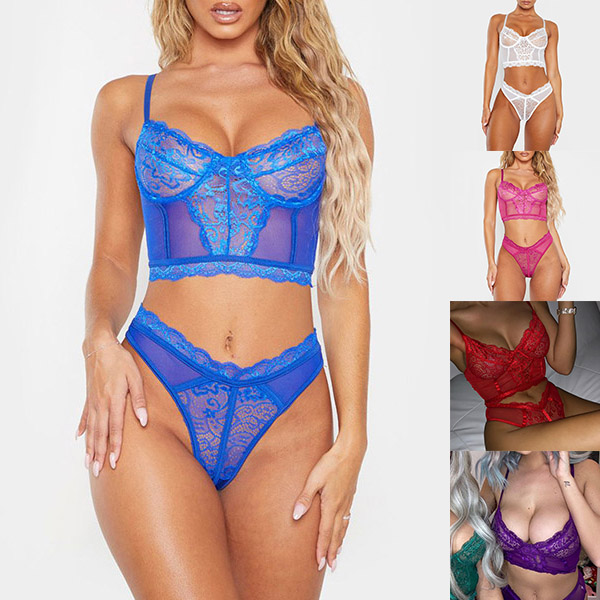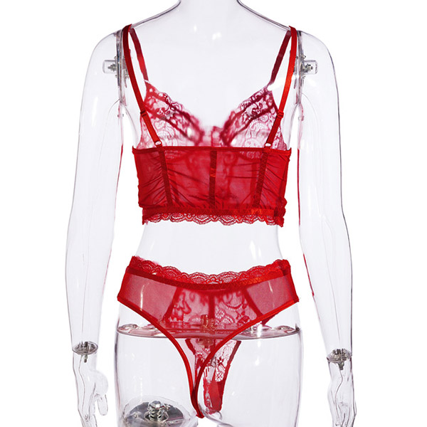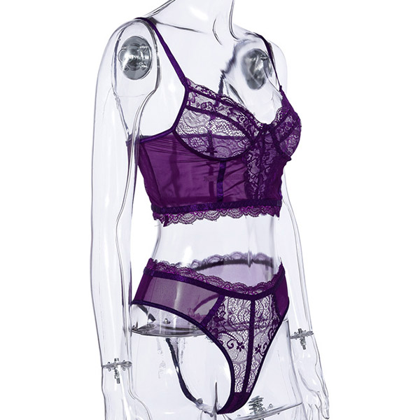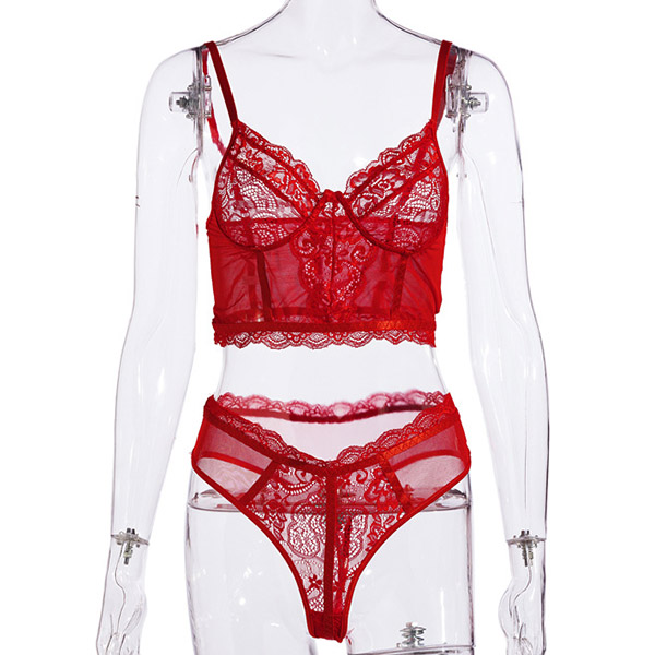 Sexy Sheer Lace Underwire Bra + Low-waist Briefs Underwear Lingerie Set