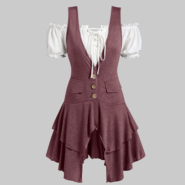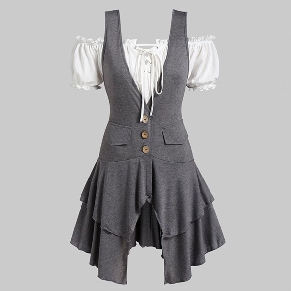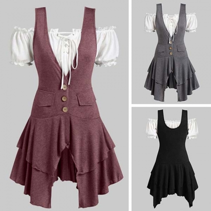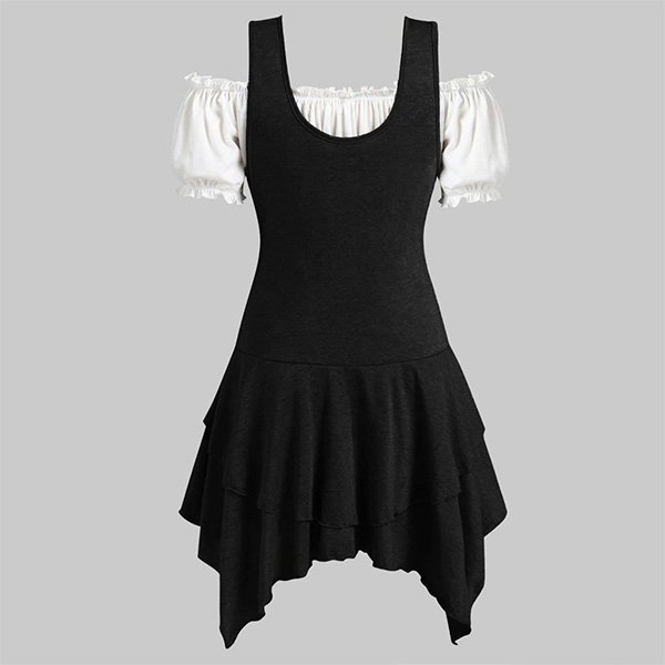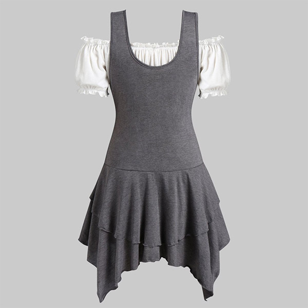 Your style can have an instant boost when you dress yourself up with this two-piece set. Including a short sleeve boat neck crop top and deep v-neck and irregular hem dress,this two-piece set can exude your personality. Like this style? Then invite this two-piece st to your wardrobe!