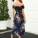 Sexy Short Sleeve Boat Neck Slit Hem Printed Dress
