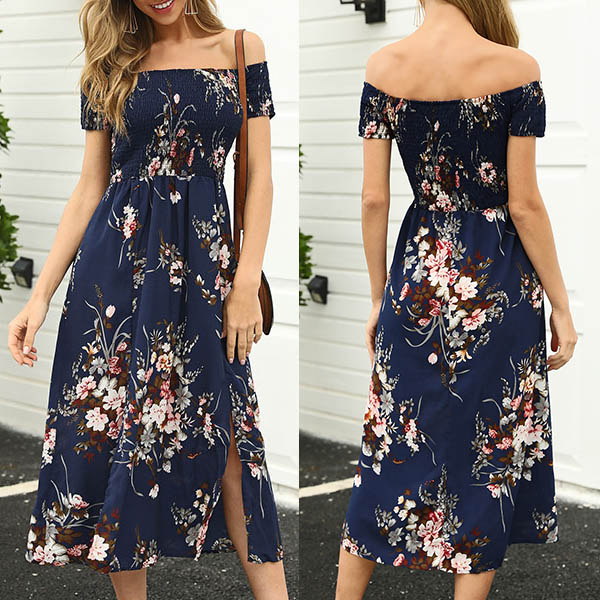 For your beach days and holiday trips,this dress can ensure you a beautiful and flirty look. Features chic and eye-catching printed details,with short sleeve,boat neck and slit hem design,this dress can make any girl look effortlessly charming and beautiful.