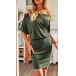 Sexy Short Sleeve Boat Neck Solid Color Slim Fit Dress