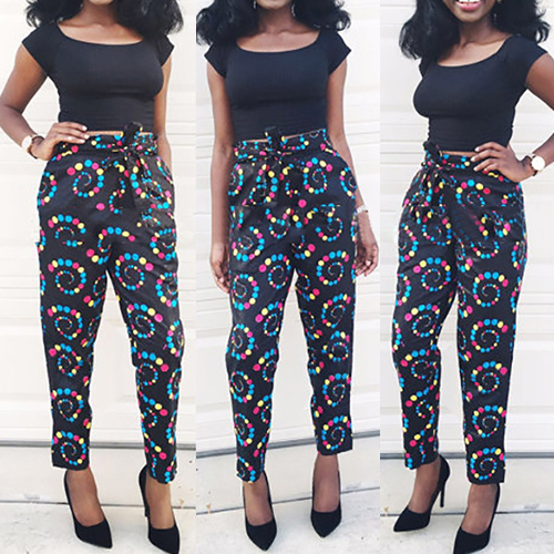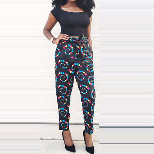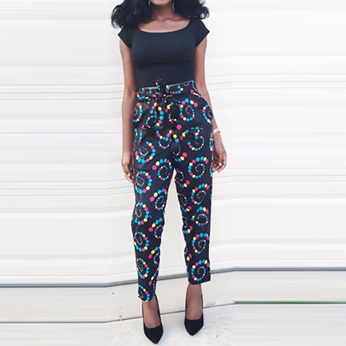 a sexy and charming look. Including a short sleeve round neck crop tops and a high waist printed harlan