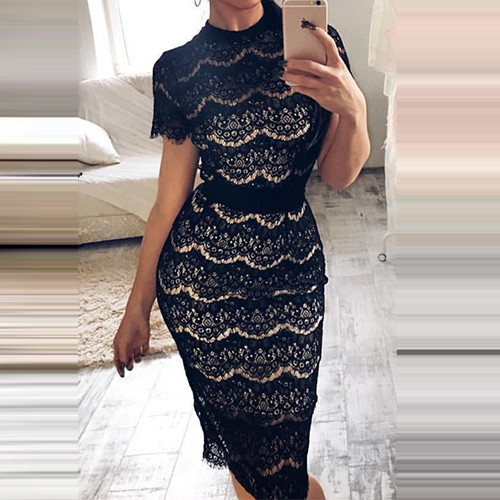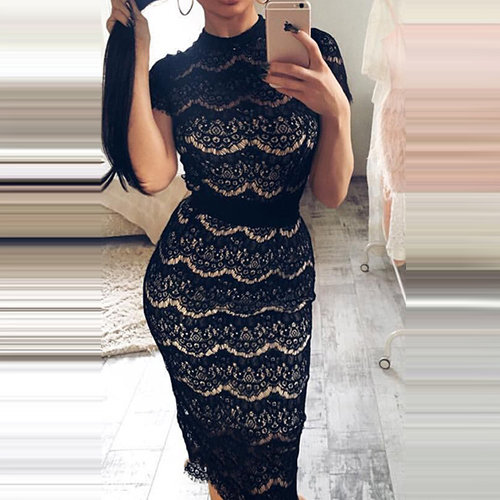 sleeve,mock neck and a fit silhouette,this lace dress can perfect accentuate your seductive curve and give you a sultry look.