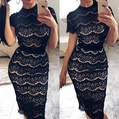 Lace pieces are a good way to show off your feminine side and charming style,this lace dress is no exception. Styled with short