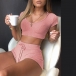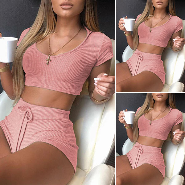 Wanna your weekend look full of sexy and flirty vibes? Then let this two-piece set help you! It consists of a short sleeve hooded crop top and a high waist shorts,this two-piece set not only can ensure you a comfortable day,but also can exude your seductive curve. It is a good chance to express your beauty and charm.