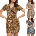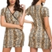 Sexy Short Sleeve Mock Neck Leopard/Serpentine Printed Slim Fit Dress