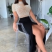 No matter when and where you are,you can easily be the focus when you don this dress. Its alluring design details like slit hem and beaded details make this piece look so stunning and distinctive. When dressing it up with your sexy heels,you are sure to stand out in the crowd!