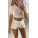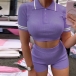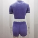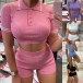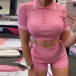 Sexy Short Sleeve POLO Collar Crop Top + High Waist Shorts Two-piece Set