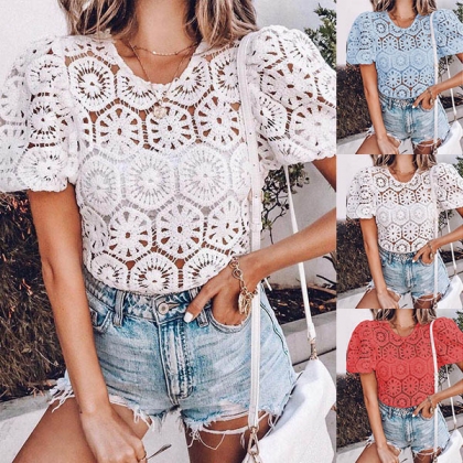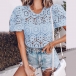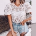 Sexy Short Sleeve Round Neck Hollow Out Top